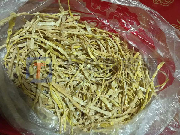 先將清洗處理好的筍體放入鍋中,再加水用猛火煮2~3小時,筍肉由白色變?yōu)橛癜咨S體變軟,留心每煮2~3鍋后要換水一次,不然筍干易變色,竹筍的質量和營養(yǎng)價值都會減少,煮熟的竹筍從鍋里撈出后,在進行冷水漂洗,晾干到竹筍表面水分蒸發(fā)后,再將漂洗過的筍體分層交織式的平整放在榨機內(nèi),逐漸加壓,經(jīng)1~2小時后,松榨再加重物重壓,直到榨出的水帶有泡沫且略帶赤色,壓榨就完成了。